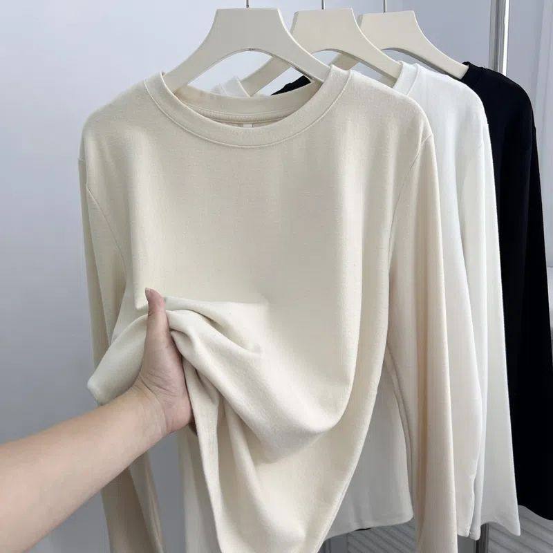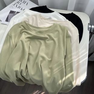 上衣 T恤女宽松显瘦打底衫 奥特莱斯 外贸余单秋冬温柔纯色圆领长袖