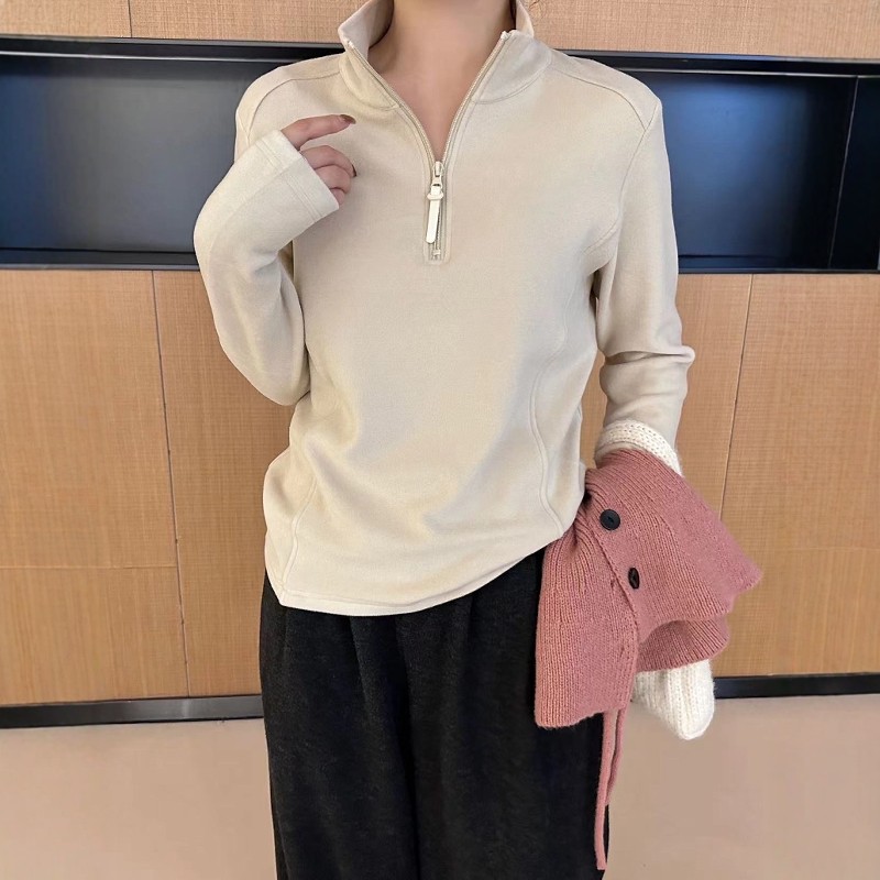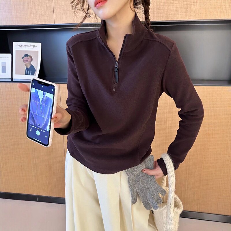 上衣 设计显瘦百搭双面德绒T恤女装 立领半拉链卫衣女2026春季 新款