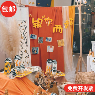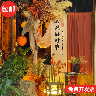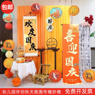 幼儿园环创布置秋天用品婚庆弹力布黄色橙色橘色布幔国风书法纱幔