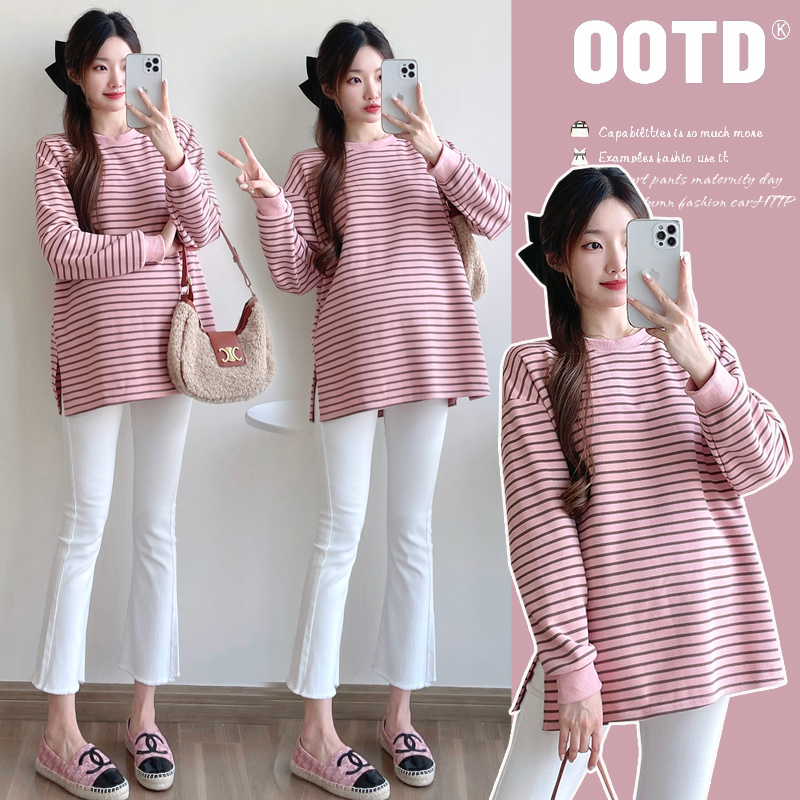 休闲长袖 时尚 条纹上衣2025新款 孕妇T恤秋季 孕妇装 怀孕打底衫 秋装
