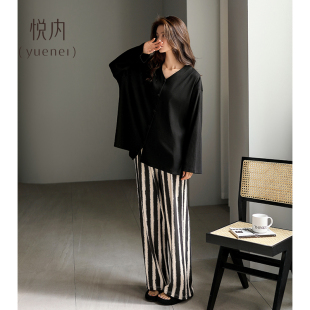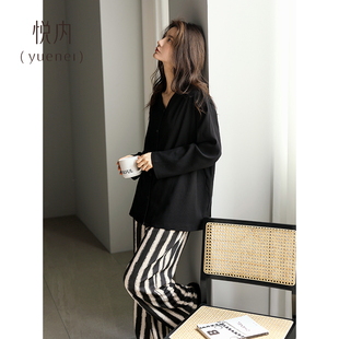 纯棉家居服高级感黑色可外穿出门 秋天长袖 悦内睡衣女士春秋款 秋季