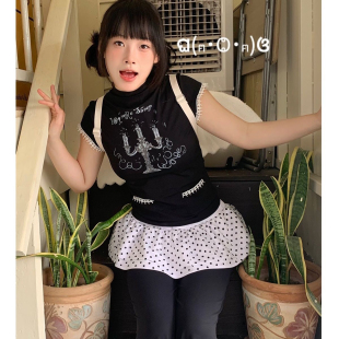运动芭蕾风波点蓬蓬小短裙屁帘双层蕾丝裙帘裤 饰裙帘遮臀百搭 子装