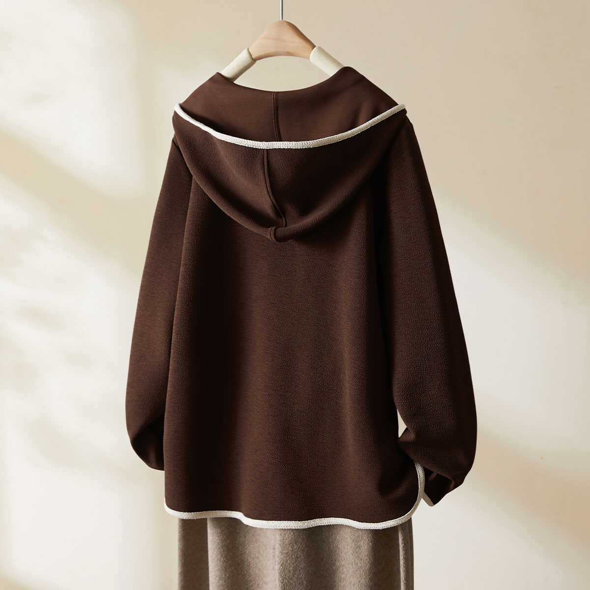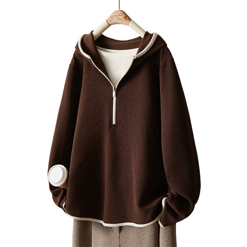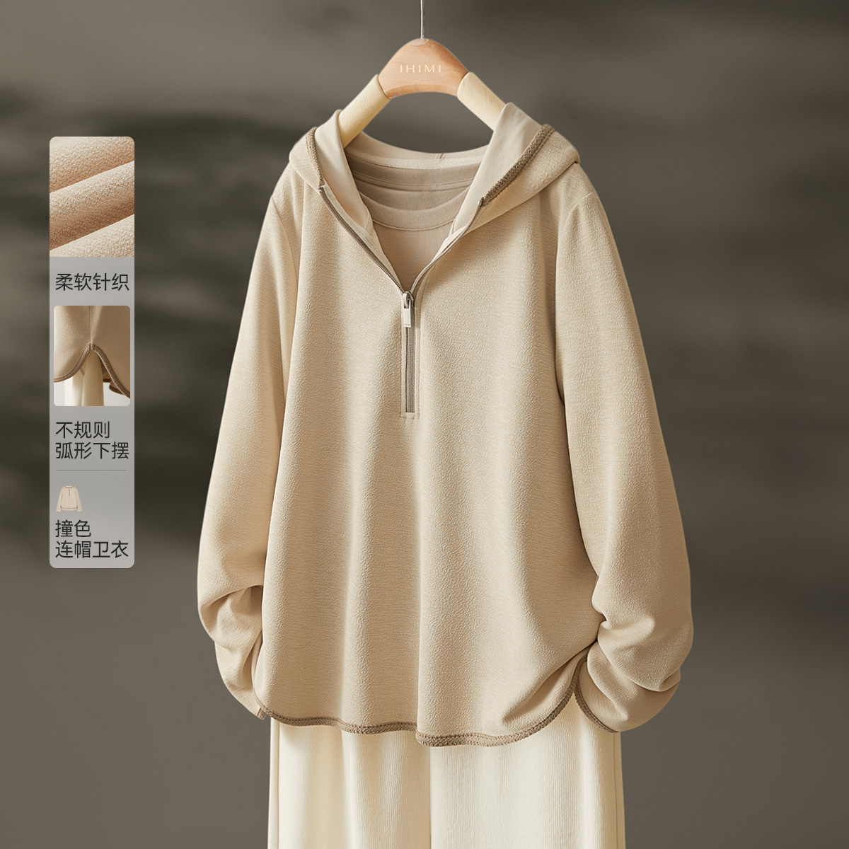 撞色宽松连帽上衣 新款 IHIMI海谧美式 春秋半拉链卫衣女2025秋季