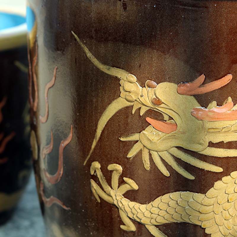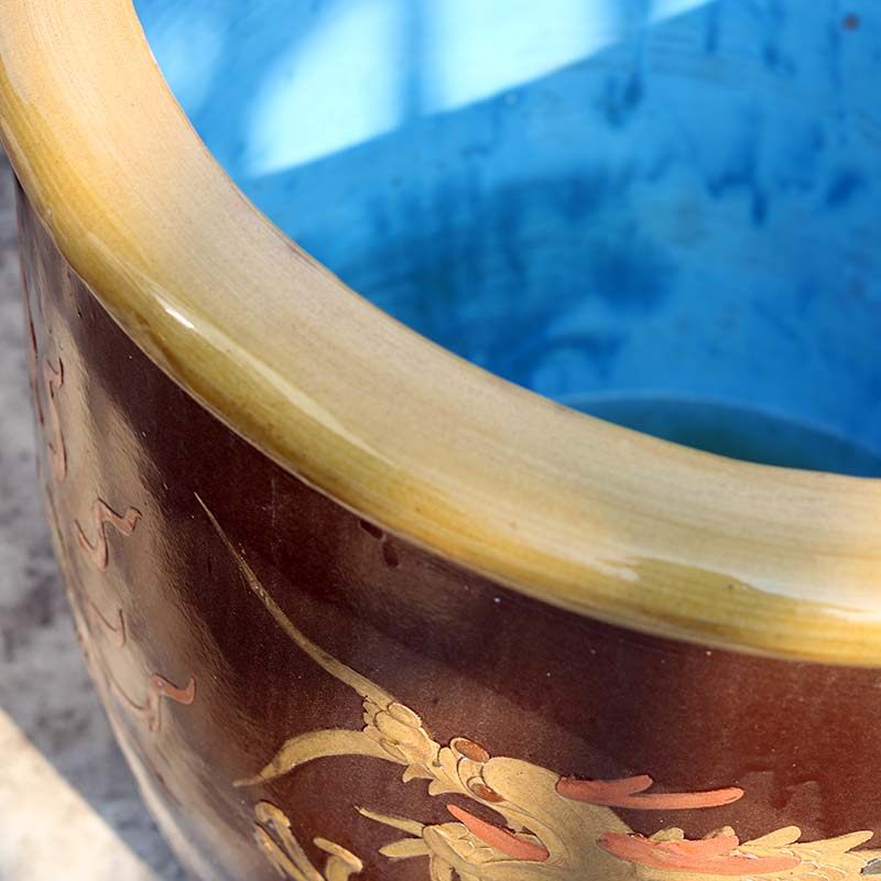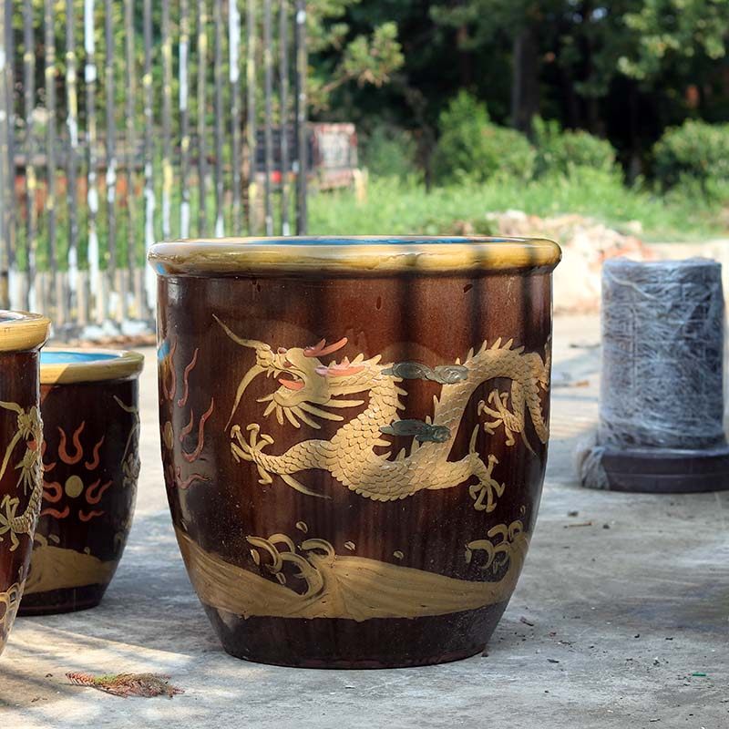 古法生态金鱼缸纯手工双龙戏珠浮雕工艺养鱼荷花睡莲陶瓷老式 水缸