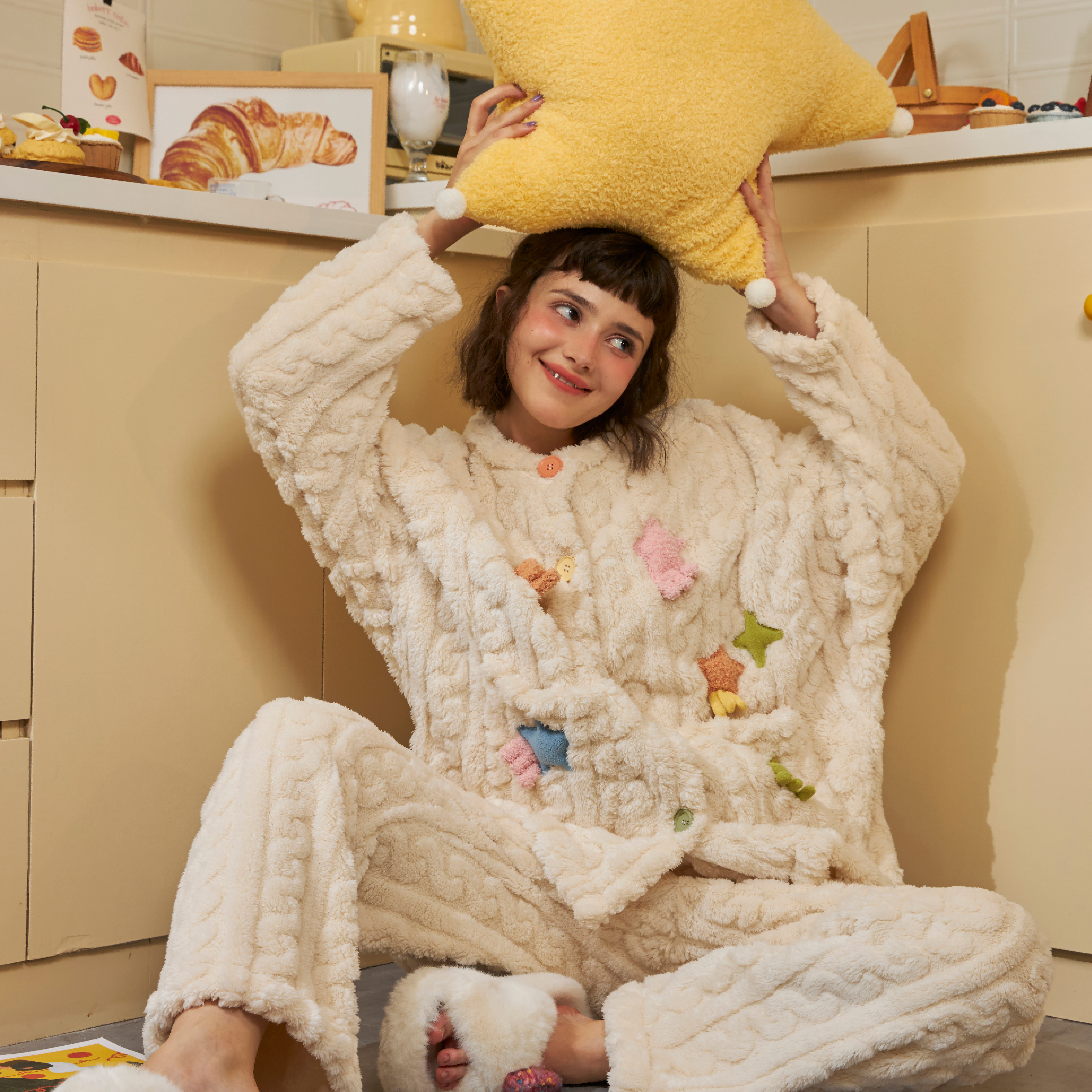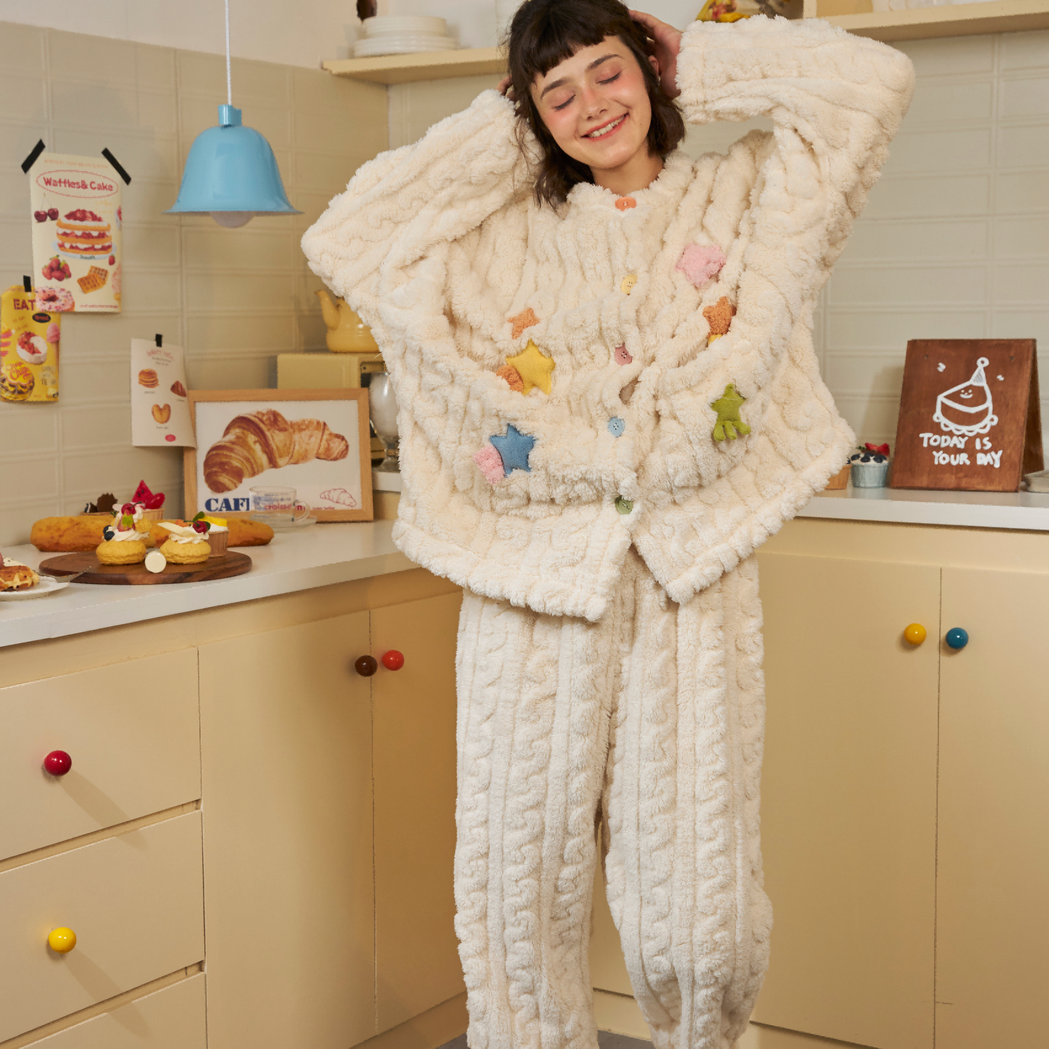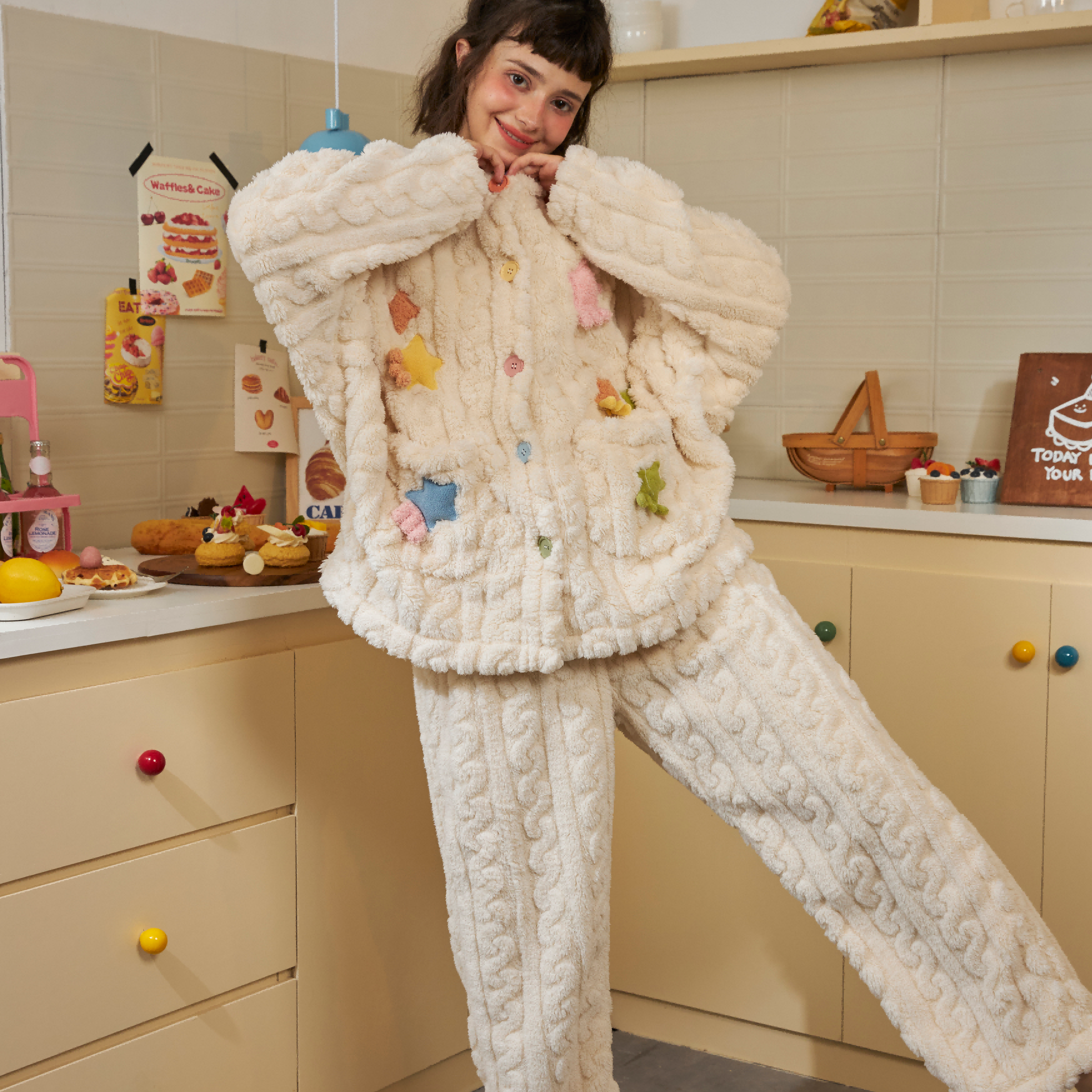 PJOCLOCK睡时记睡衣女冬天可爱卡通2024新款 珊瑚绒可外穿家居服
