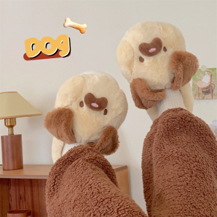 学生居家用防滑毛绒鞋 细细条 2025新款 女冬季 可爱卡通小狗棉拖鞋