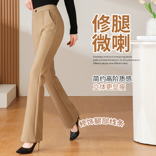 女2025秋冬季 直筒喇叭休闲长裤 新款 西装 子 显瘦高腰大码 毛呢微喇裤