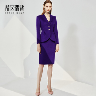 空姐工作气质复古西装 秋冬羊毛呢正装 套裙 职业套装 希区高端法式