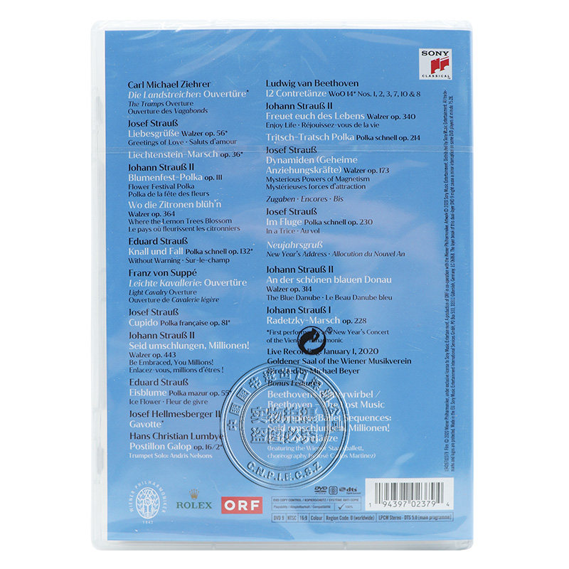 尼尔森斯指挥 2020年维也纳新年音乐会DVD SONY 中图音像 现货