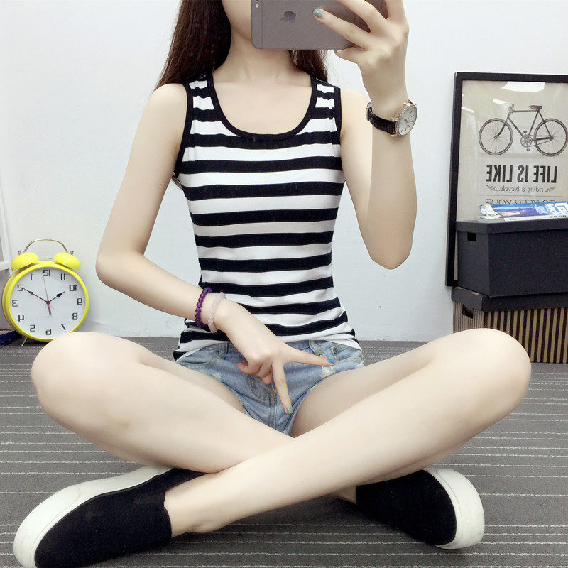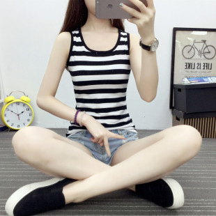 显瘦条纹打底运动吊带背心女无袖 纯棉百搭修身 上衣潮 外穿韩版 夏装