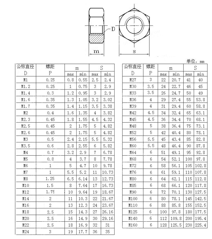 304不锈钢螺母六角螺帽螺丝帽大全M1M2M3M4M5M6M8M10M12M14M16M33