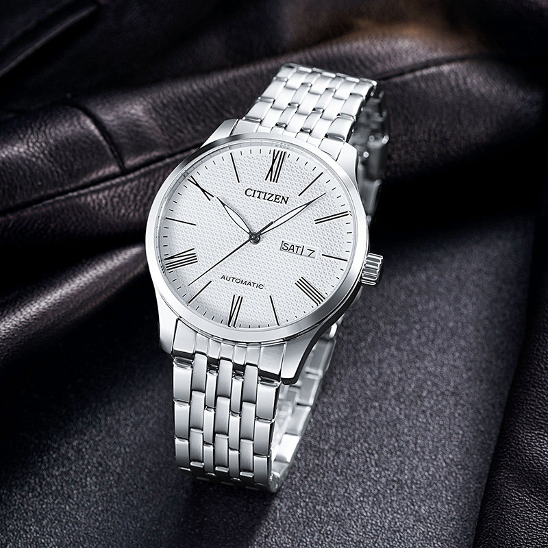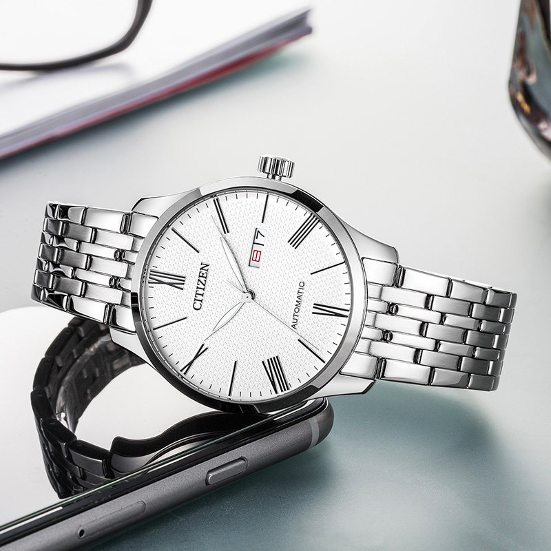 西铁城官方简约商务复古机械皮带休闲男表NH8350送男友