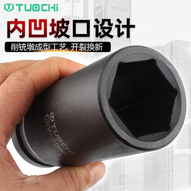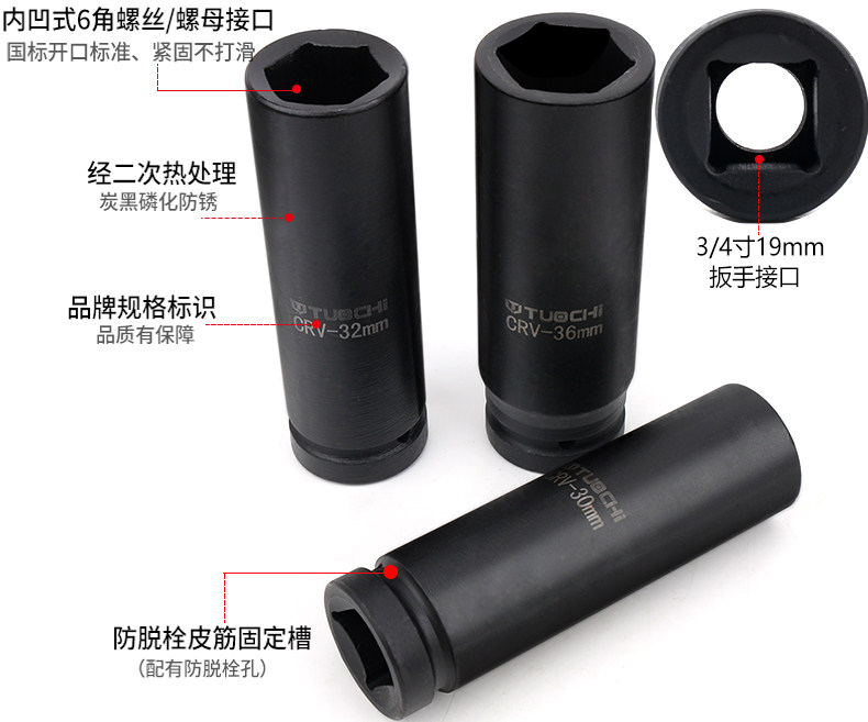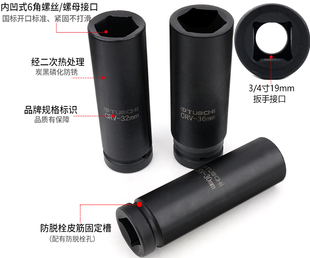 4中风炮筒头重型气动扳手六角中型风炮套头32 加长风炮套筒