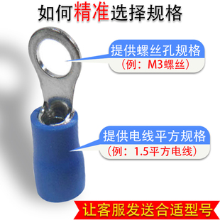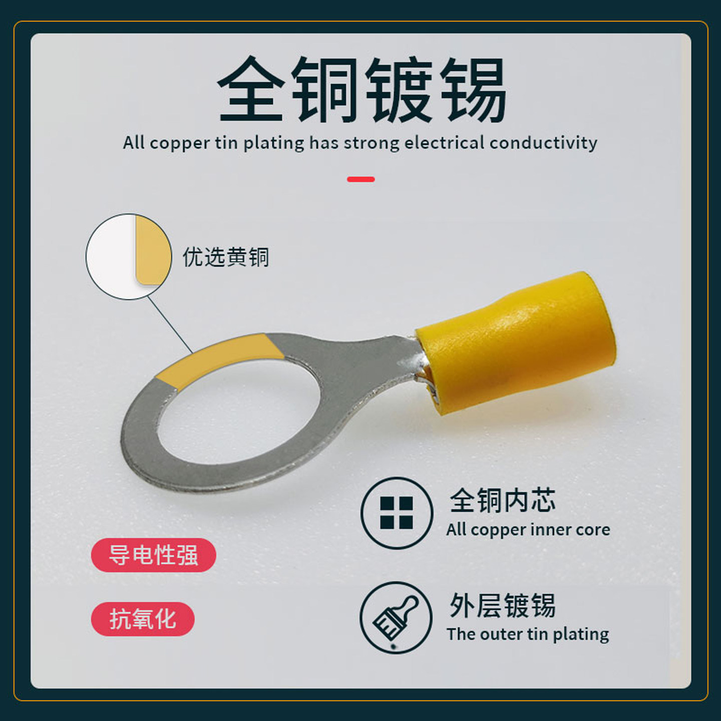 RV接线端子圆形线鼻子预绝缘冷压端子压线耳O型铜鼻子电线接头铜