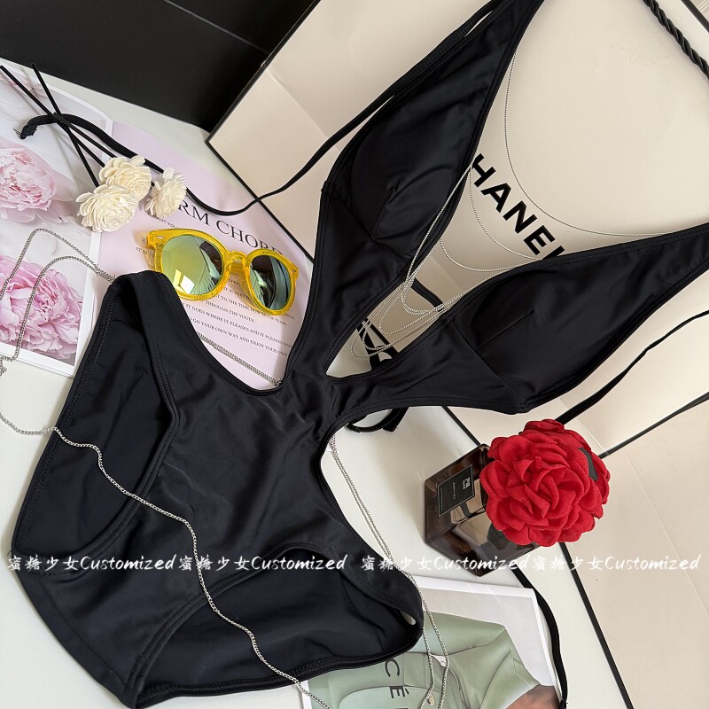 atlanticbeach法式 复古泳衣女泡温泉度假连体性感露背显瘦高级感