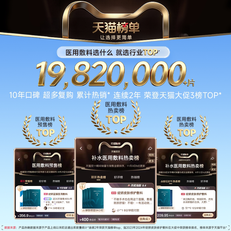 面膜官方正品 绽妍医用修护敷料术后补水 透明质酸钠蓝膜水光针非