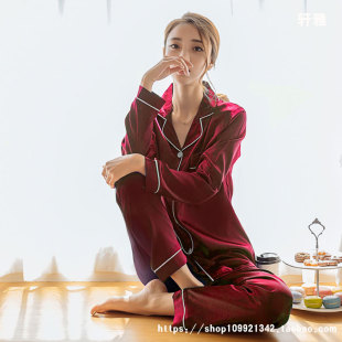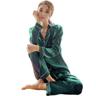 真丝胖mm200斤夏冰丝绸宽松家居服套装 加大码 薄款 长袖 睡衣女春秋
