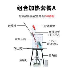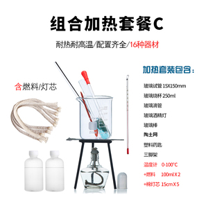 水沸腾了加热套餐组合手工DIY烧杯试管滴管三脚架酒精灯陶土网石棉网全套化学加热实验套装 玻璃仪器水温实验