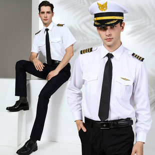 机长工作服飞行员保安服夏装 套装 制服男 白色衬衫 航空服空少长短袖