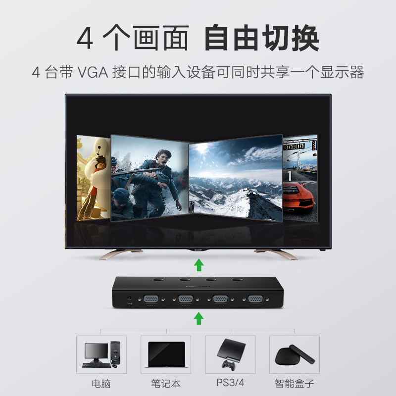 绿联 vga切换器四进一出高清两台多主机电脑一个显示器屏幕二进三进vgi分屏分配分线器视频监控vja切屏转换器