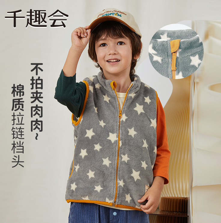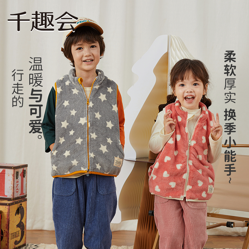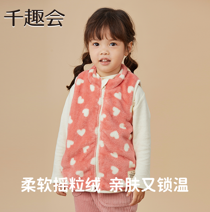 男女童马甲坎肩摇粒绒立领保暖马甲 儿童马甲冬季 千趣会童装 春秋款