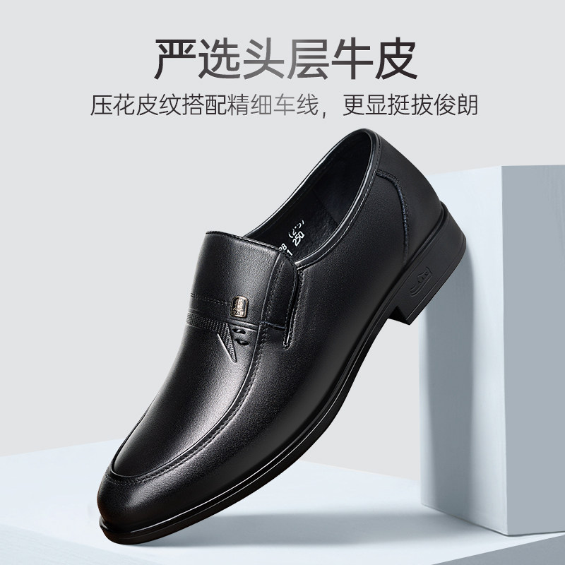 中年爸爸鞋 意尔康男鞋 软底一脚蹬真皮乐福鞋 男士 羊皮商务休闲皮鞋