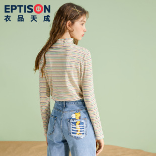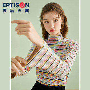 衣品天成条纹打底衫 件 女内搭新款 春时尚 半高领t恤 修身 19.9