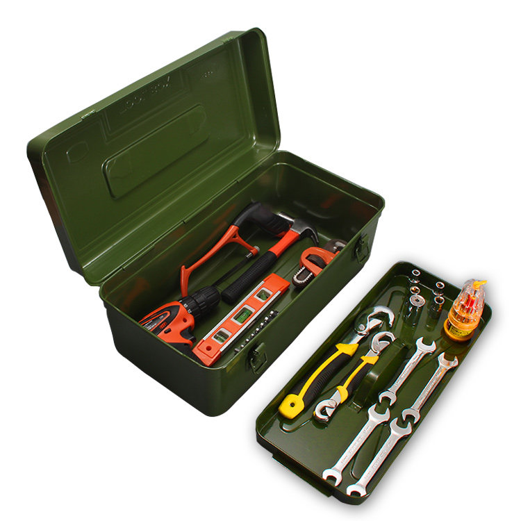 加厚铁皮工具箱大中小号家用五金铁制工具盒铁箱手提式 收纳盒车载