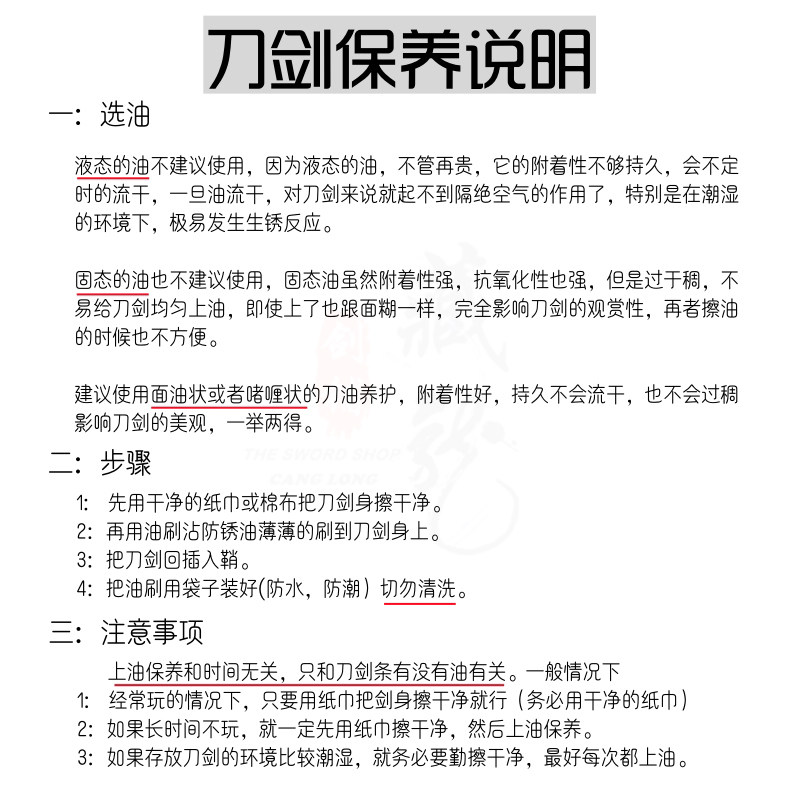 专业宝剑兵器 宝剑保养用品 宝剑刀剑保养油擦油布 铁具保养用品