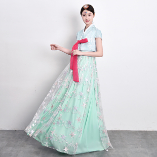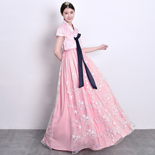 新款 朝鲜民族服装 短袖 韩服改良韩国传统女士古装 演出 长裙套装 夏季