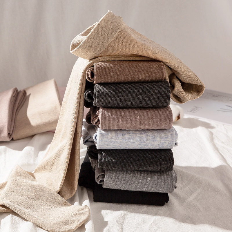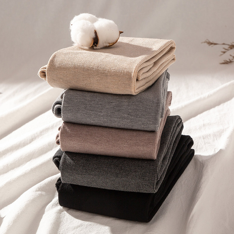女外穿春秋薄款 袜高腰显瘦秋裤 竖条螺纹修身 踩脚裤 弹力大码 打底裤