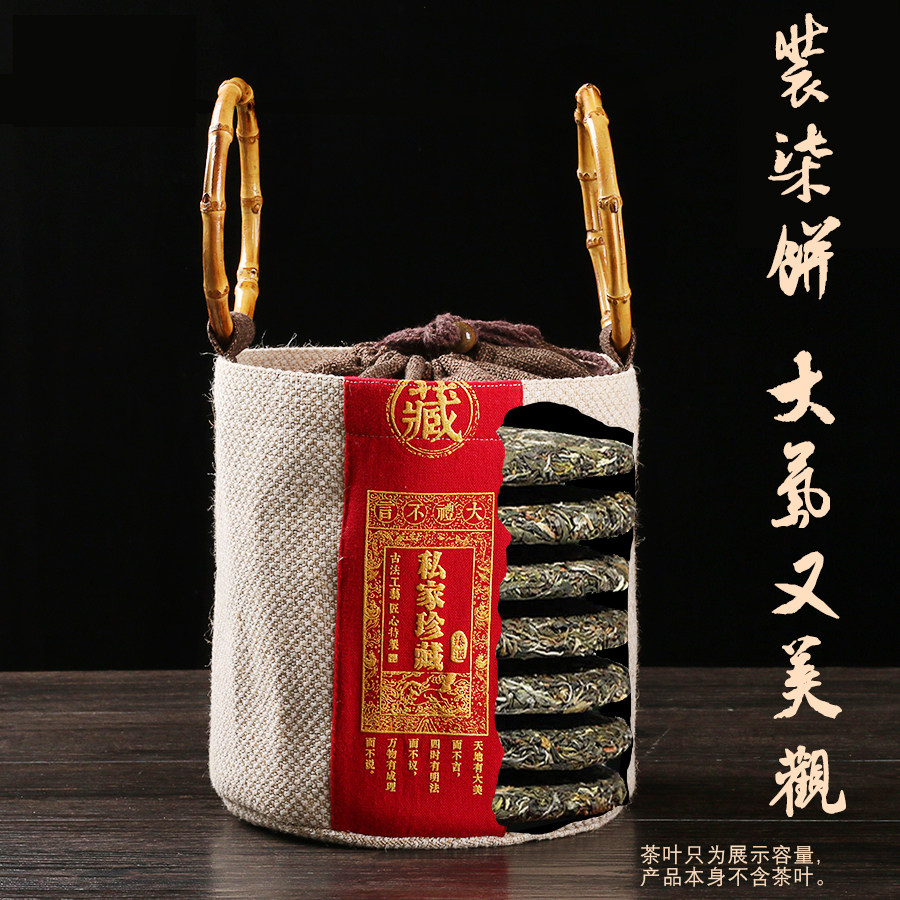 福鼎白茶通用布袋竹根提手普洱茶200 357g茶饼收纳袋子可定制LOGO
