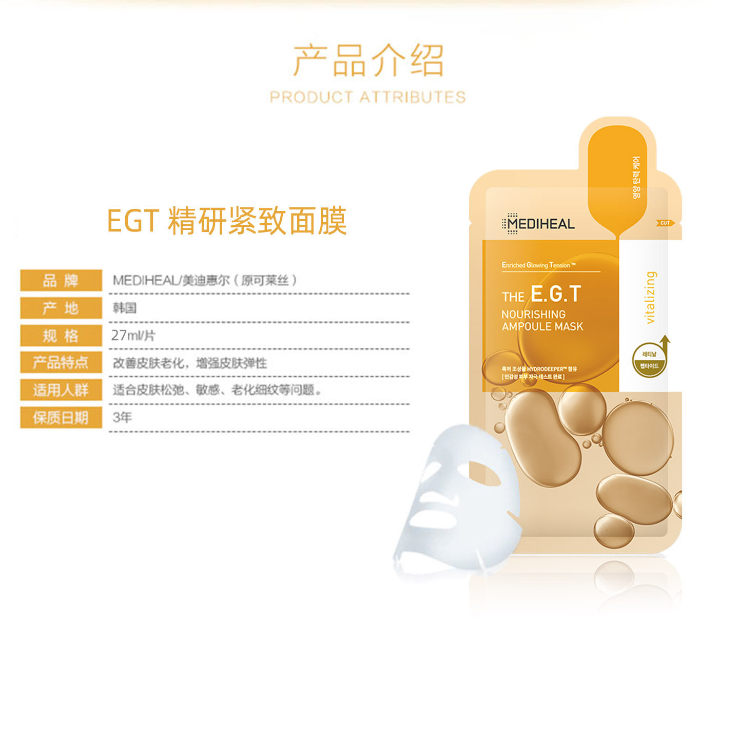 韩国mediheal美迪惠尔可莱丝EGT修护面膜 提拉紧致补水抗皱女正品