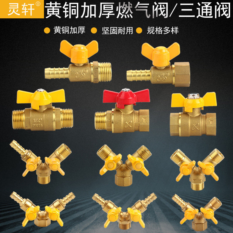 全铜加厚燃气阀门天然气阀4分6分煤气开关阀Y型三通阀内外丝球阀