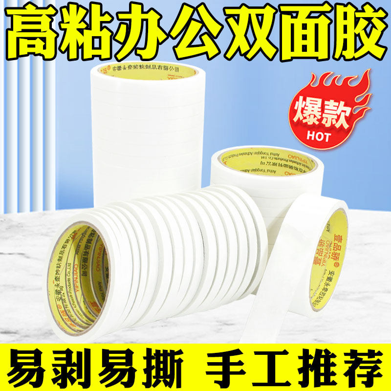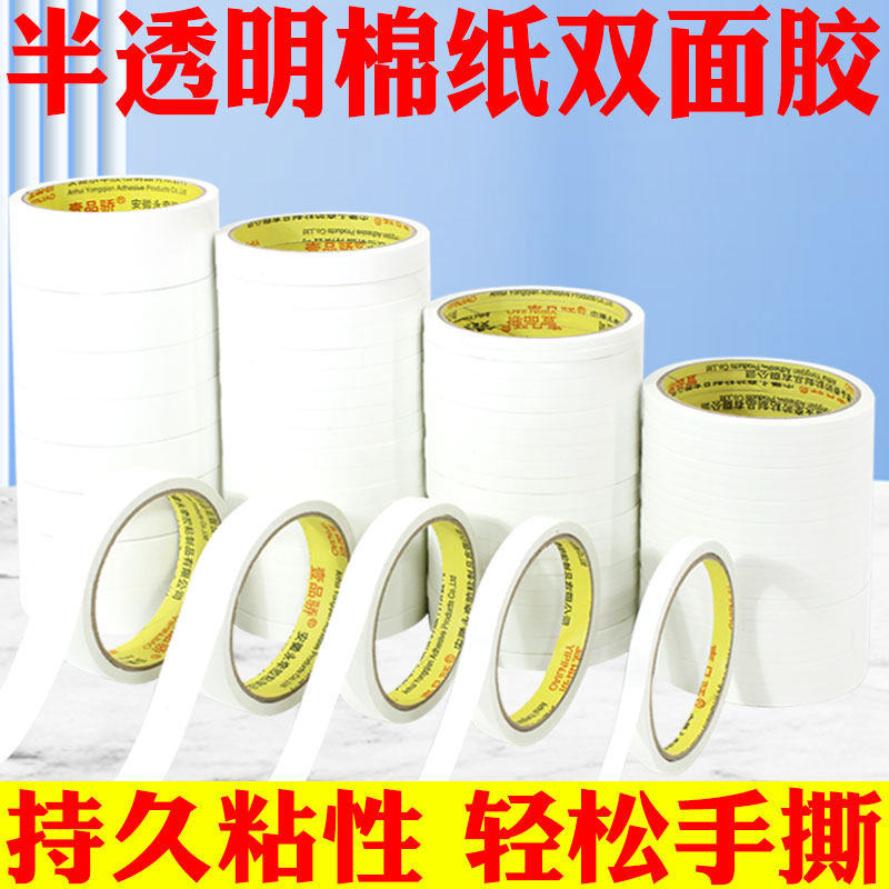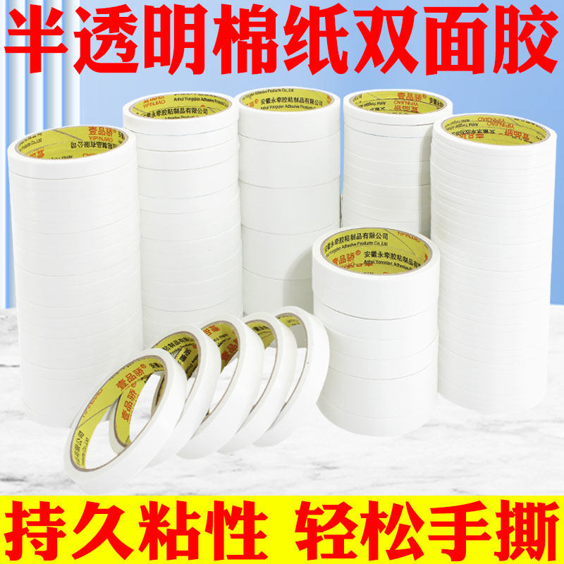超薄双面胶带防护服专用双面胶办公双面胶强力高粘固定两面胶纸胶带易撕批发双面胶棉纸薄款 宽12345cm