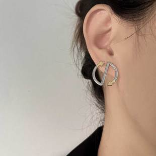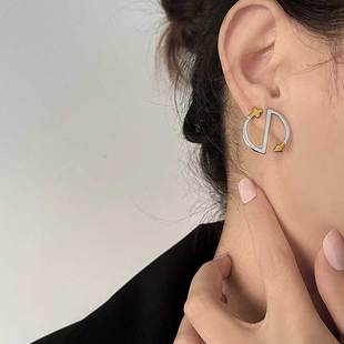 Glam 欧美简约耳饰双色箭头金属短发耳环圆形耳钉女 Ever个性