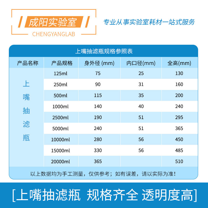500 1000 15000 125 20000ml过滤瓶高硼硅加厚耐压抽滤瓶实验室 10000 250 5000 华鸥上嘴抽滤瓶 2500
