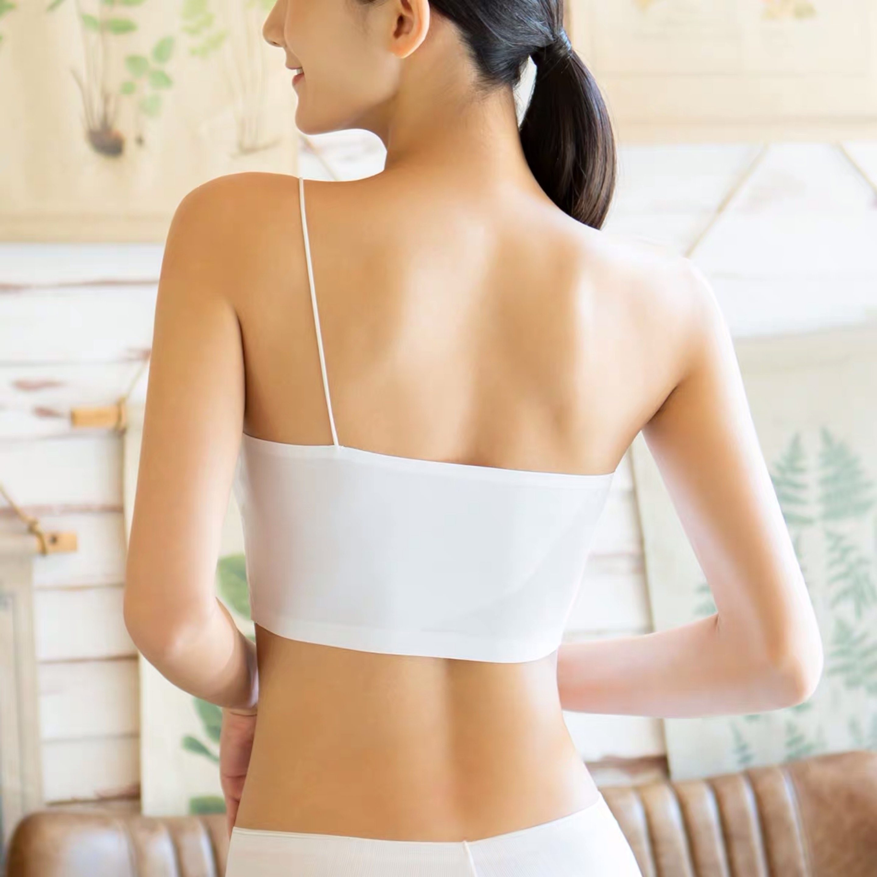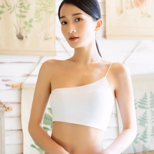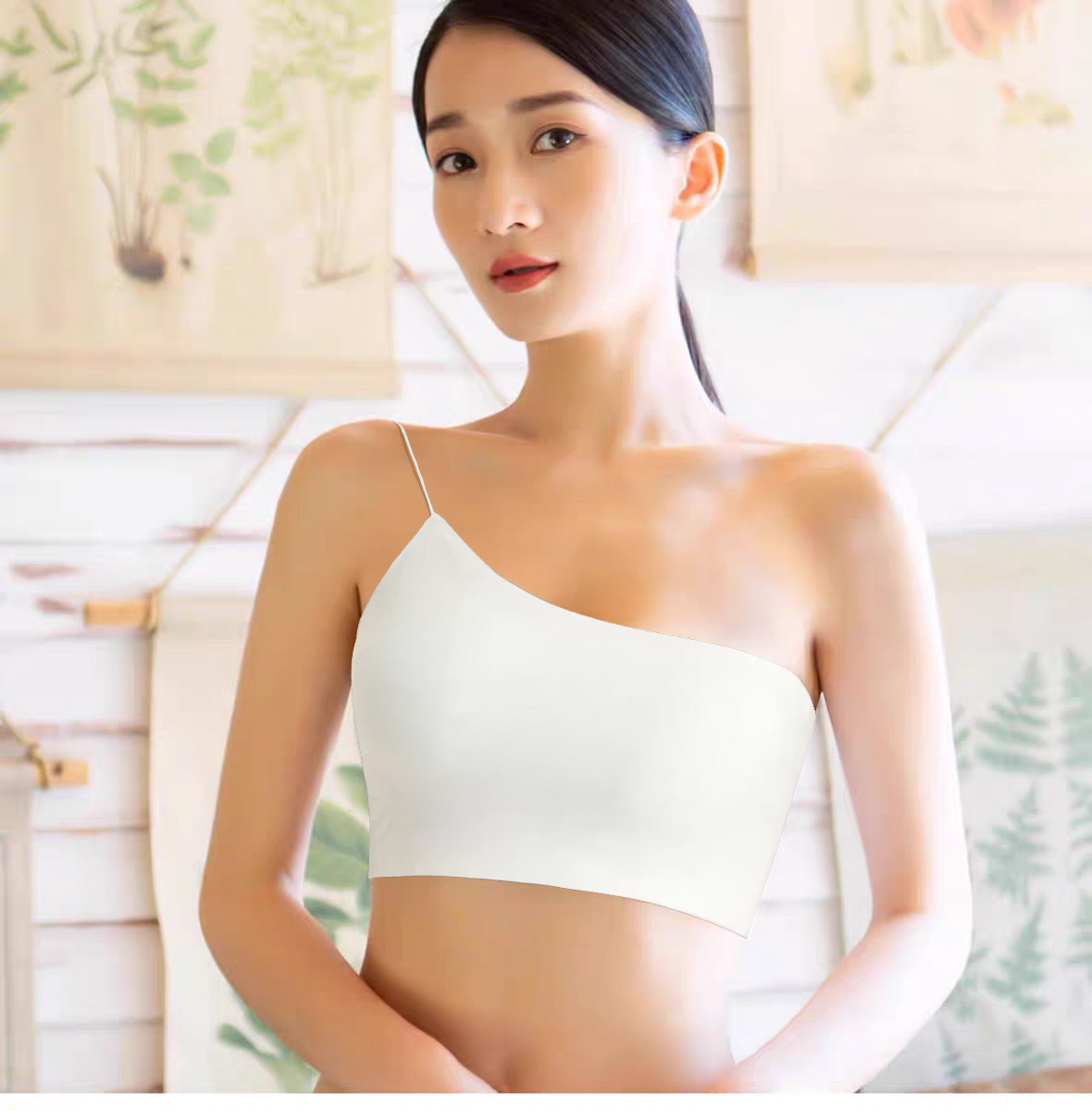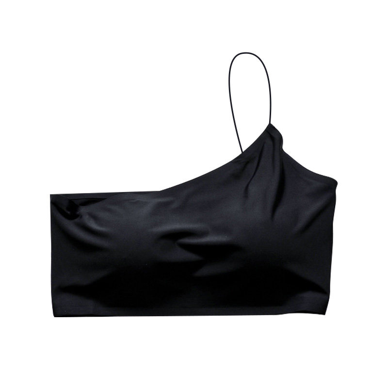 新款 性感斜肩裹胸打底内衣 单肩吊带抹胸带胸垫背心女无痕冰丝薄款