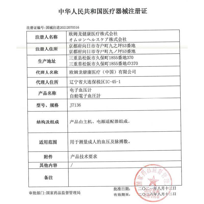 欧姆龙电子血压计J7136原装 血压测量仪kj 进口全自动家用上臂式