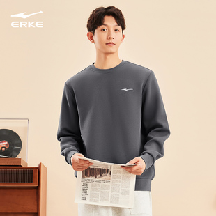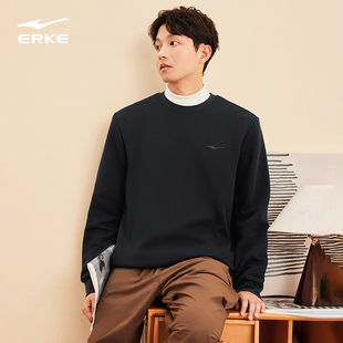 宽松针织运动上衣简约男装 加绒圆领套头衫 卫衣男冬季 安踏休闲长袖