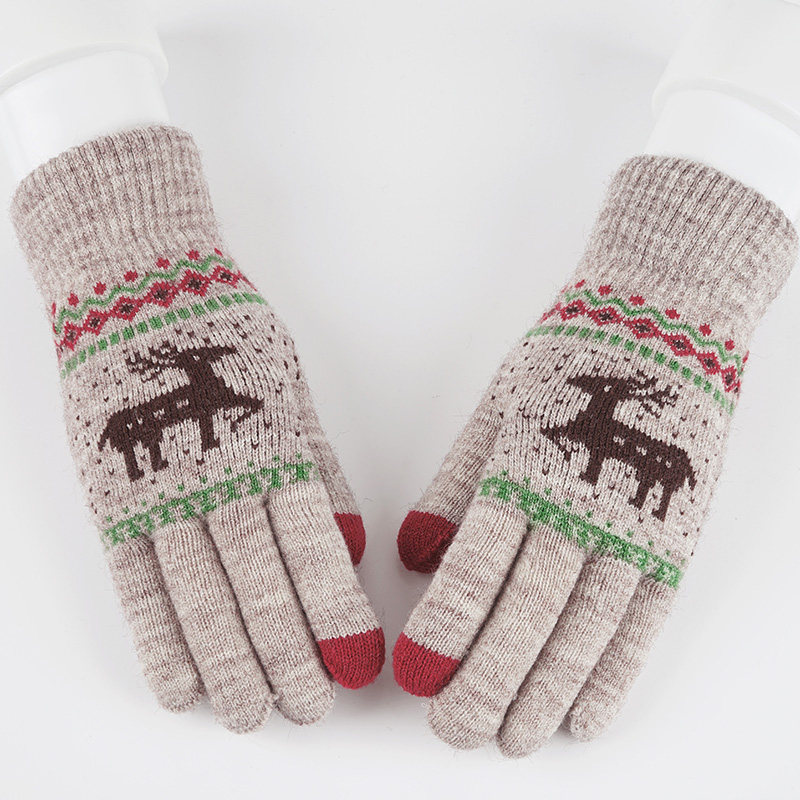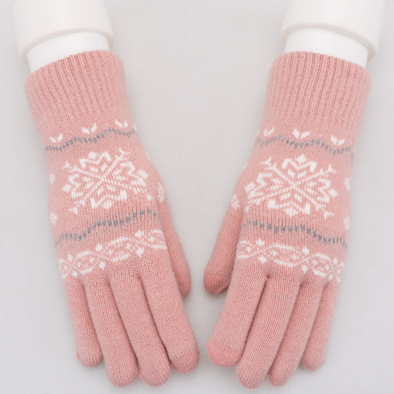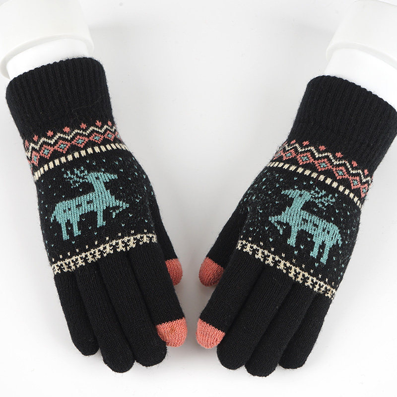 手套女士冬季 户外可触屏骑行车学生针织加绒厚保暖毛线手套男冬天