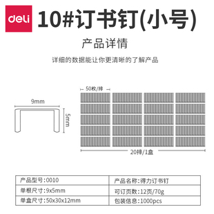 得力小号订书钉10号订书针0010学生用迷你订书器订子办公用小号订书机针10 订针12号钉书钉 订书机钉子一盒装
