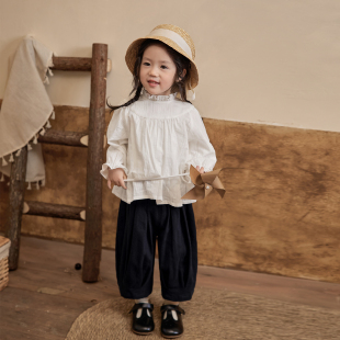 婴儿娃娃衫 陈大猪小O宝 新款 女白色2024春季 上衣 宝宝木耳边衬衫