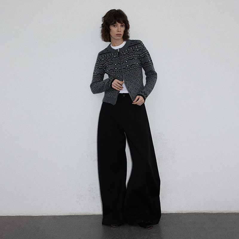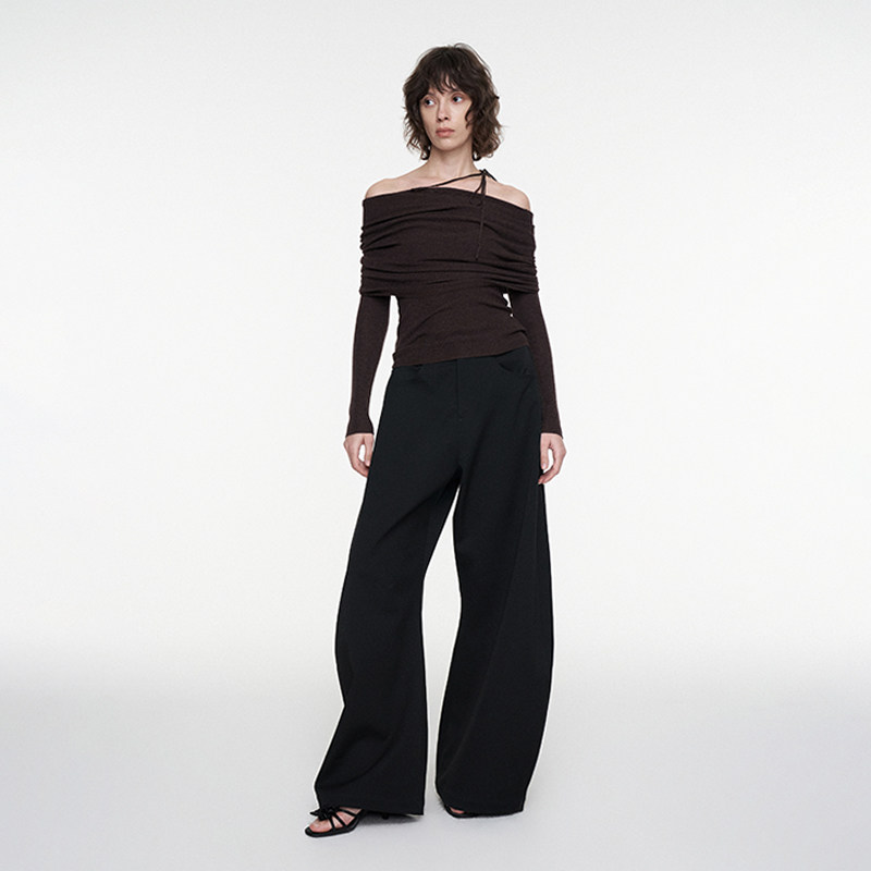 裤 黑色垂感低腰西装 FIRSTFLOOR 女直筒阔腿弯刀裤 赵露思同款
