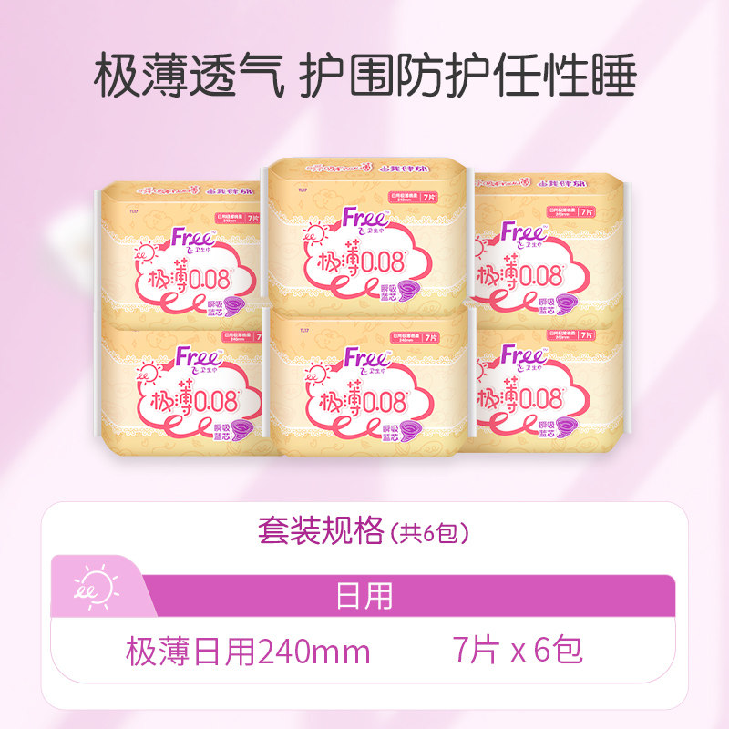 透气卫生巾6包 Free极薄卫生巾日用组合姨妈巾薄款 优于新国标