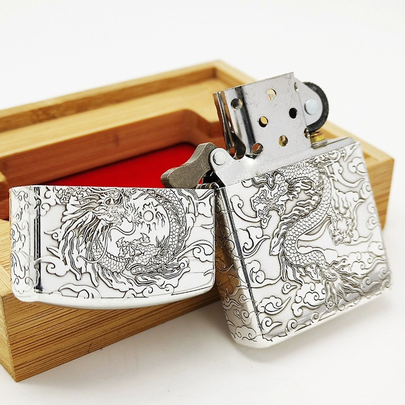 防风煤油zp男士 正品 礼品定制刻字 纯银祥云龙原装 打火机zippo正版
