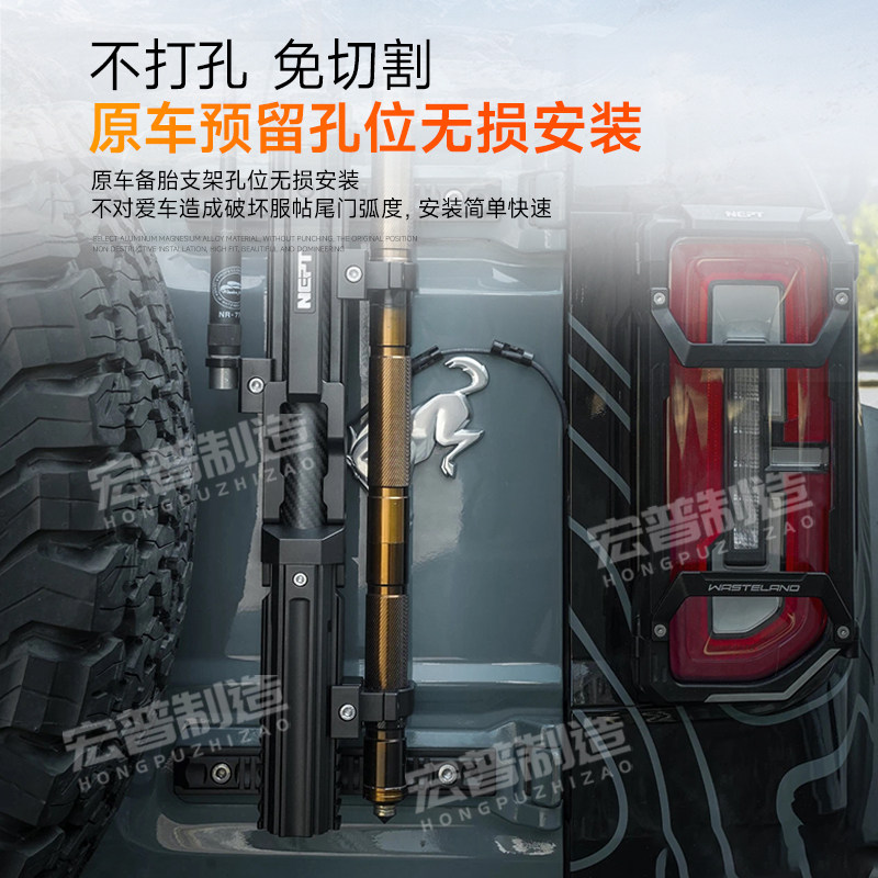 适用烈马NEPT荒地旗杆支座三合一旗杆架Bronco改装 配件天线架铁锹