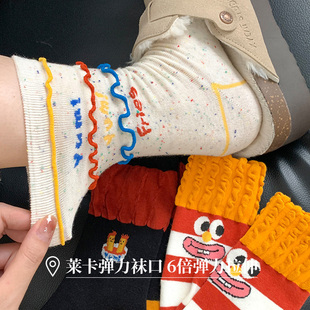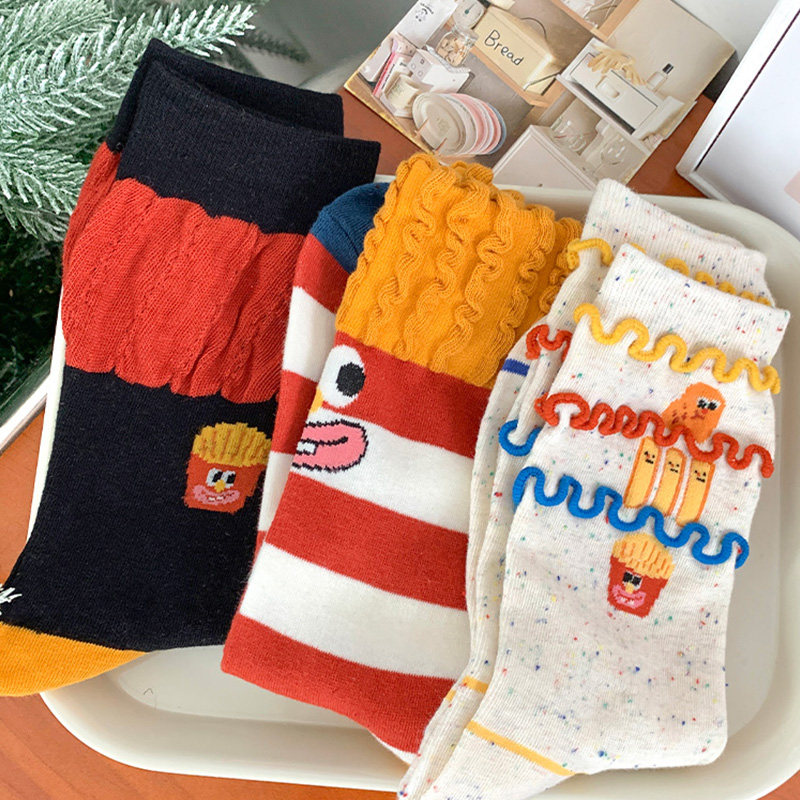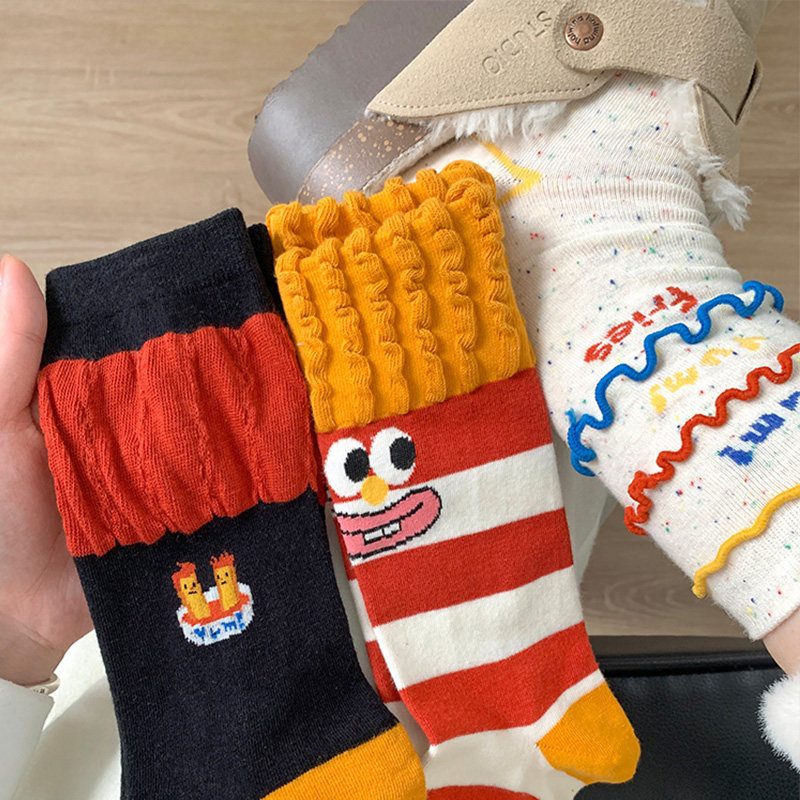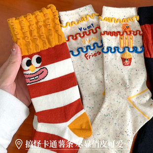 薯条袜子女夏季 搞怪可爱卡通中筒袜联名ins潮网红春秋韩国长筒袜