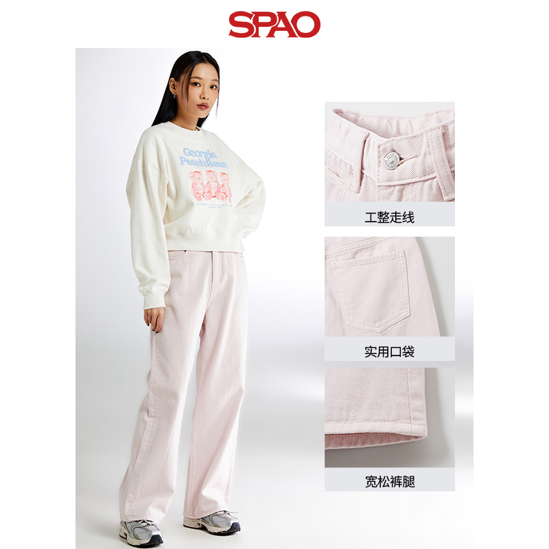 女士休闲宽松简约时髦舒适直筒棉质长裤 SPAO韩国同款 秋季
