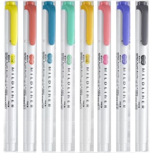 现货日本ZEBRA斑马旗舰店官网斑马荧光色笔WKT7荧光笔MILDLINER双头标记号笔学生用手账淡彩色划重点文具